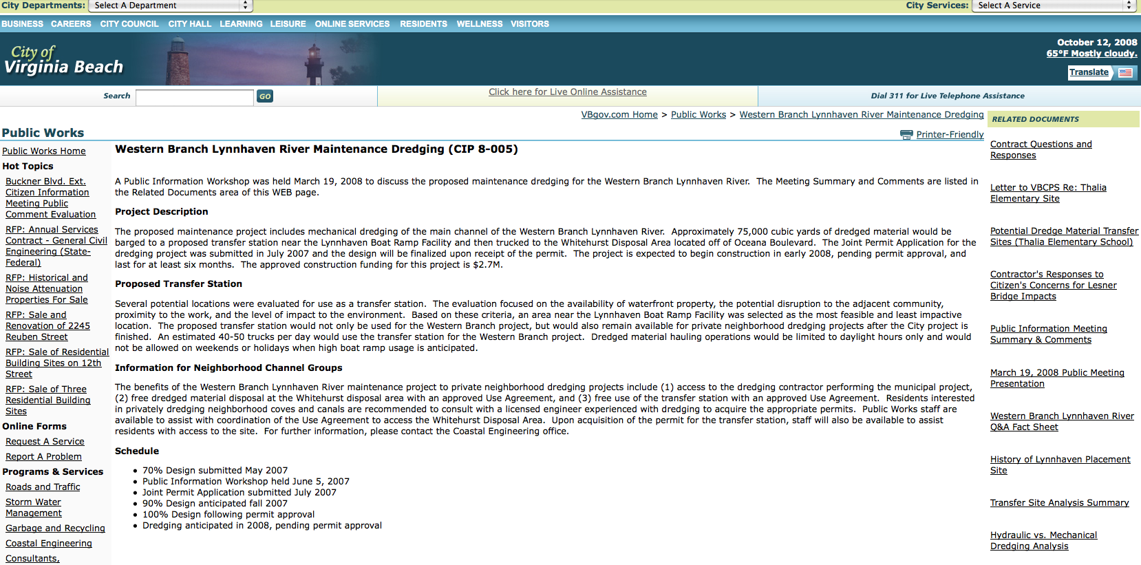 Western Branch Lynnhaven River Maintenance Dredging (CIP 8-005) October 12, 2008