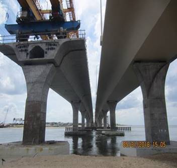 View Looking West at completed Span #7 (right) of the new EB Lesner Bridge