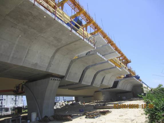 On Friday, July 6th A major milestone will be reached – the placement of the final bridge segment of the EB bridge superstructure (see email below). Although not as important as opening the bridge to traffic (still anticipated the last week of August), this event does mark the end of all major bridge construction for the project. After that segment is placed and the tendons stressed and grouted, the gantry will be launched ahead to the bridge approach (in front of the VA/MD Pilots Association) and readied for disassembly. Work is already taking place for the disassembly of the loading gantry located in the Lynnhaven Dredge Material Storage Area.