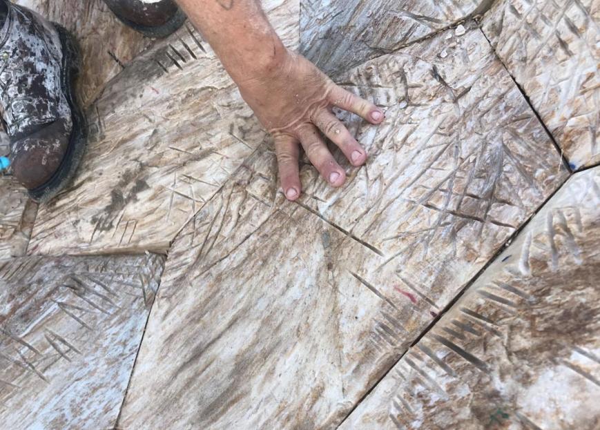 Benjamin Heller is a visiting artist from NY on a grant from VBeach Office of Cultural Affairs. He is creating a sculpture—Terrapin Basin—near the Brock Environmental Center. His assistant had to leave, and he is finishing alone.