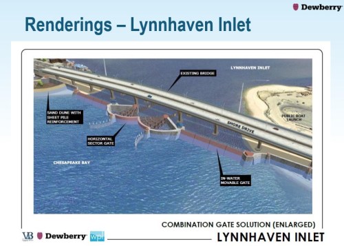 On January 15th, Dewberry consultants presented a draft strategies plan to City Council identifying various projects to help prepare Virginia Beach for a Sea Level Rise (SLR) of 3 feet. The draft plan was created with input from City Staff, a SLR Working Group and consultants. One of the key recommendations in the plan is to build flood walls all along the Bayfront Beaches and flood gates at the Lynnhaven Inlet.