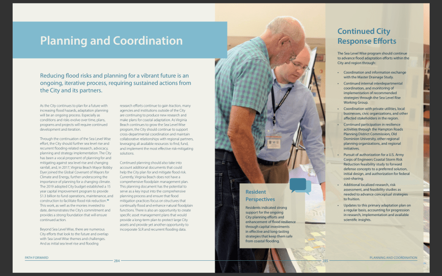 In the last five years, the City of Virginia Beach has completed a comprehensive effort to develop strategies to respond to sea level rise and related increases in flooding. The study, known as Sea Level Wise, has produced a wealth of information to understand what challenges the City will face and develop diverse strategies to pro-actively reduce the impacts. This document presents the findings of the Sea Level Wise effort. . . .