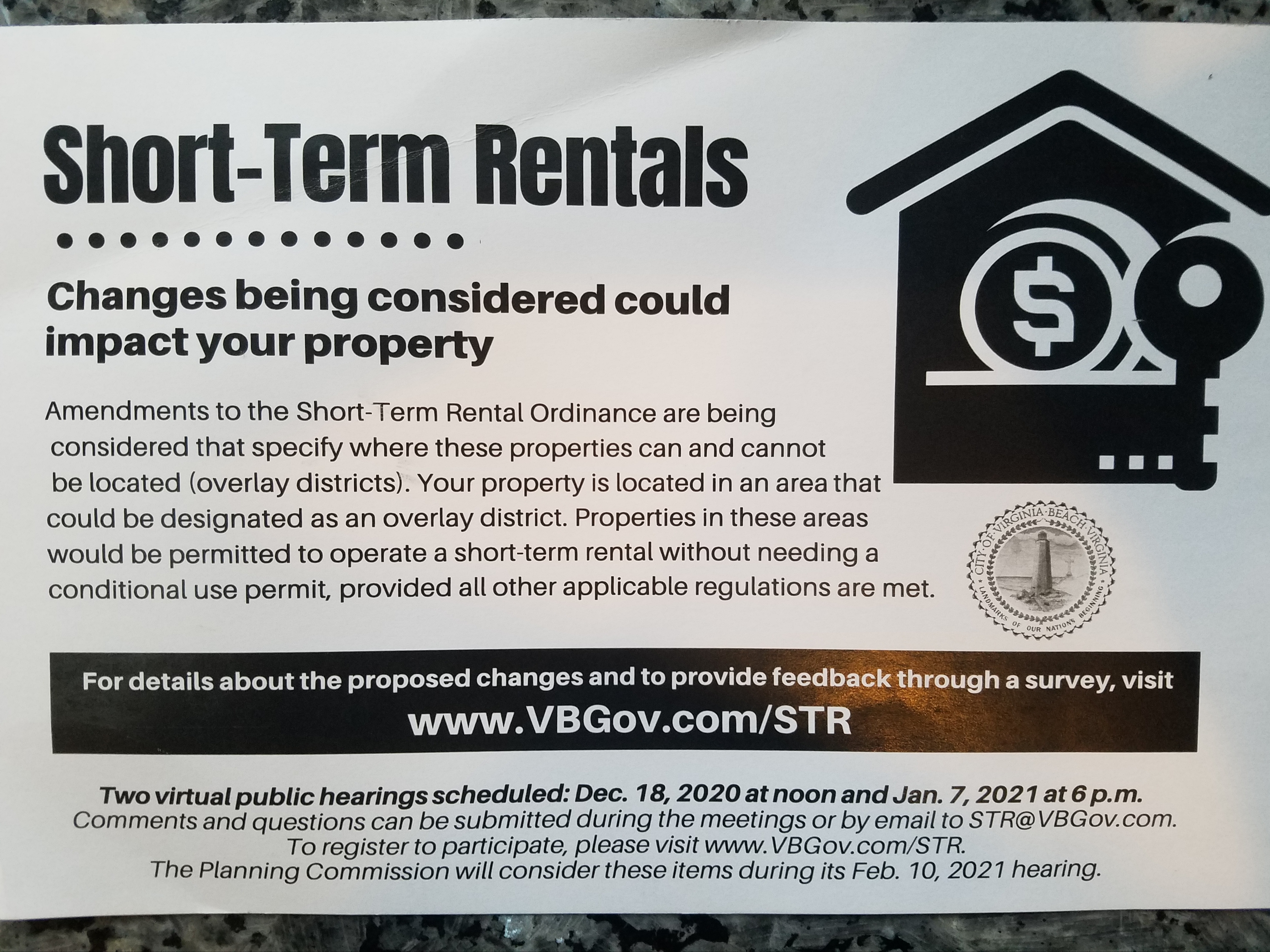 City website for information on Short Term Rentals – https://www.vbgov.com/government/departments/planning/Pages/Short-Term-Rentals.aspx