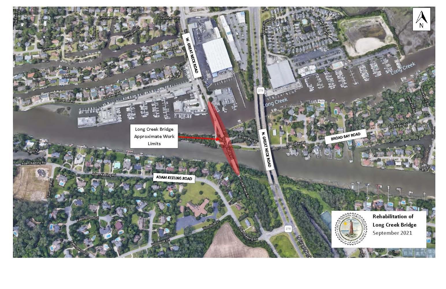 The Virginia Beach Public Works Operations Group has scheduled routine maintenance to the Long Creek Bridge on West Great Neck Road beginning the end of this month. Crews will begin work the week of September 27, 2021.