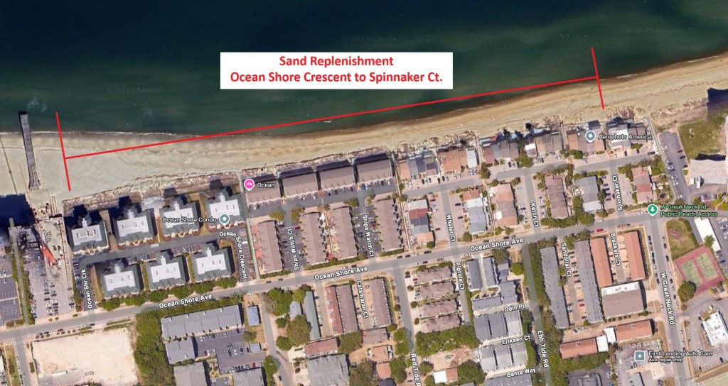 In response to the recent October coastal low pressure storms, Public Works obtained quotes to place approximately 84,000 cubic yards of sand along 1,700 feet of the Cape Henry Beach shoreline between Ocean Shore Cresent and Spinnaker Ct. Virginia Carolina Civil received the purchase order to conduct the sand truck haul on 11/7/2025. Sand will be excavated from the City sand stockpiles at the Lynnhaven Sand Stockpile site adjacent to the Lynnhaven Municipal Boat Ramp and the Maple Street sand stock pile. The sand placment effort will begin in early December. (Updated 11/14/2025).