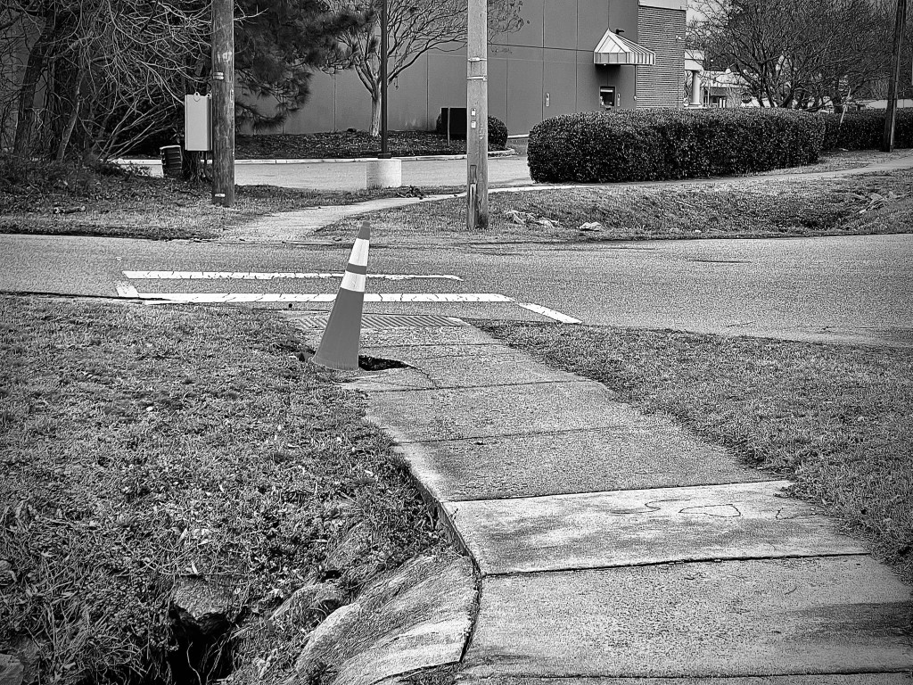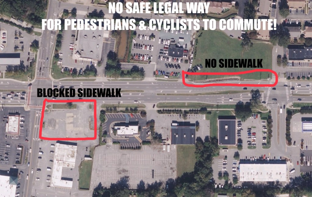 That blockade to pedestrians & cyclists to safely navigate is at southeast corner of Shore Drive & Pleasure House Road where there is NO contiguous sidewalks on north side of Shore Drive. Minimum of dozens of pedestrians & cyclists commute through this area daily.