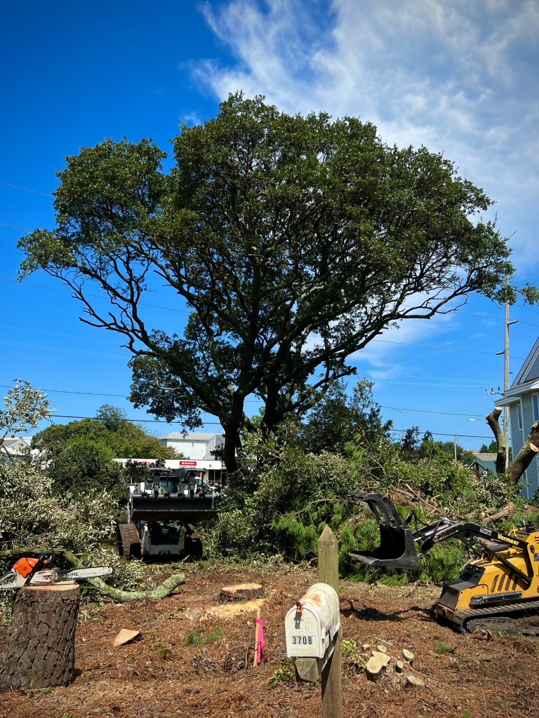 Thanks to Mickey Toll, owner of Chesapeake Tree Service, for explaining that the larger live oak pieces being cut down will be hauled away by North Landing Firewood & Hauling Inc and milled for USE AS LUMBER for furniture & other potential uses well beyond mulch & firewood. Hooray!
