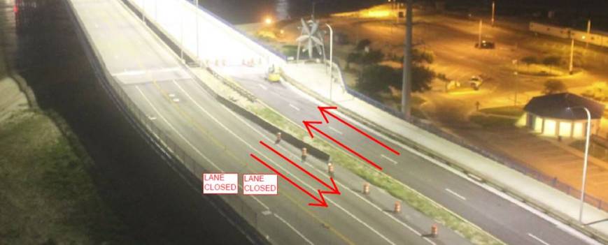 The single lane of eastbound Shore Drive traffic will be moved onto the new eastbound bridge once the new pavement markings have been placed. The westbound single lane of traffic will be maintained on the westbound bridge through this next stage of the traffic switch. Again, workers will be eradicating old pavement markings and placing new ones in preparation for the new traffic pattern.
