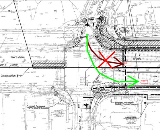 Finally, this is a word of caution to users of East Stratford Road who are leaving the Chesapeake House or 3556 On The Bay Condominiums. For the past several years drivers have gotten used to the temporary traffic pattern and have been making a LEFT TURN from southbound East Stratford Road onto eastbound Shore Drive and crossing the WESTBOUND LESNER BRIDGE. After this traffic switch drivers making this same LEFT TURN have pay attention to the new pavement markings and make sure that they enter eastbound Shore Drive and cross the EASTBOUND LESNER BRIDGE. Habits are sometimes hard to change, even with the new signage and pavement markings, so we just want to put this word of caution out there so that nobody ends up the wrong way on the westbound bridge!