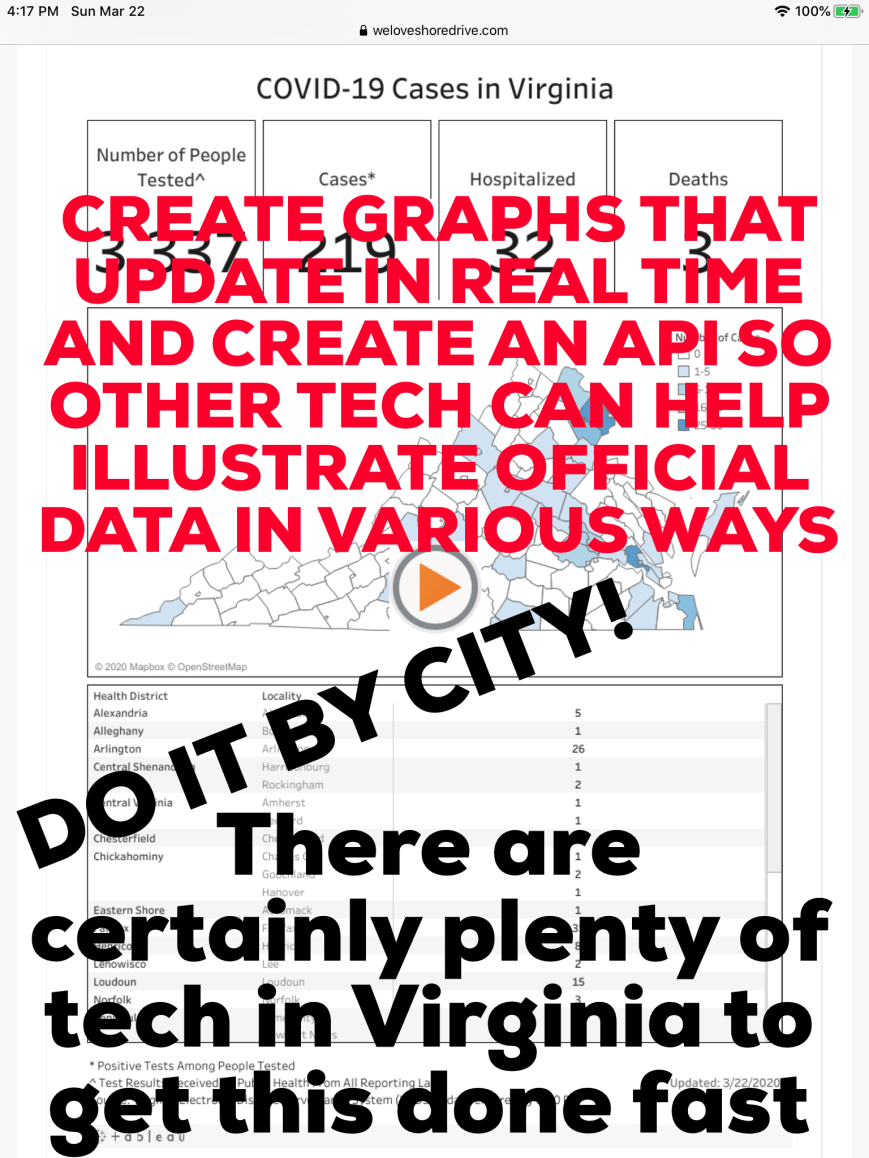COVID-19 CONFIRMED CASES IN VIRGINIA BEACH DO YOU KNOW ANYONE PROVIDING A LIVE GRAPH ? PLEASE LET US KNOW BY COMMENTING BELOW OR tim@sdcc.info Share this: Click to email a link to a friend (Opens in new window) Email Click to share on Facebook (Opens in new window) Facebook Click to share on X (Opens in new window) X More Click to print (Opens in new window) Print Click to share on Tumblr (Opens in new window) Tumblr Like Loading...