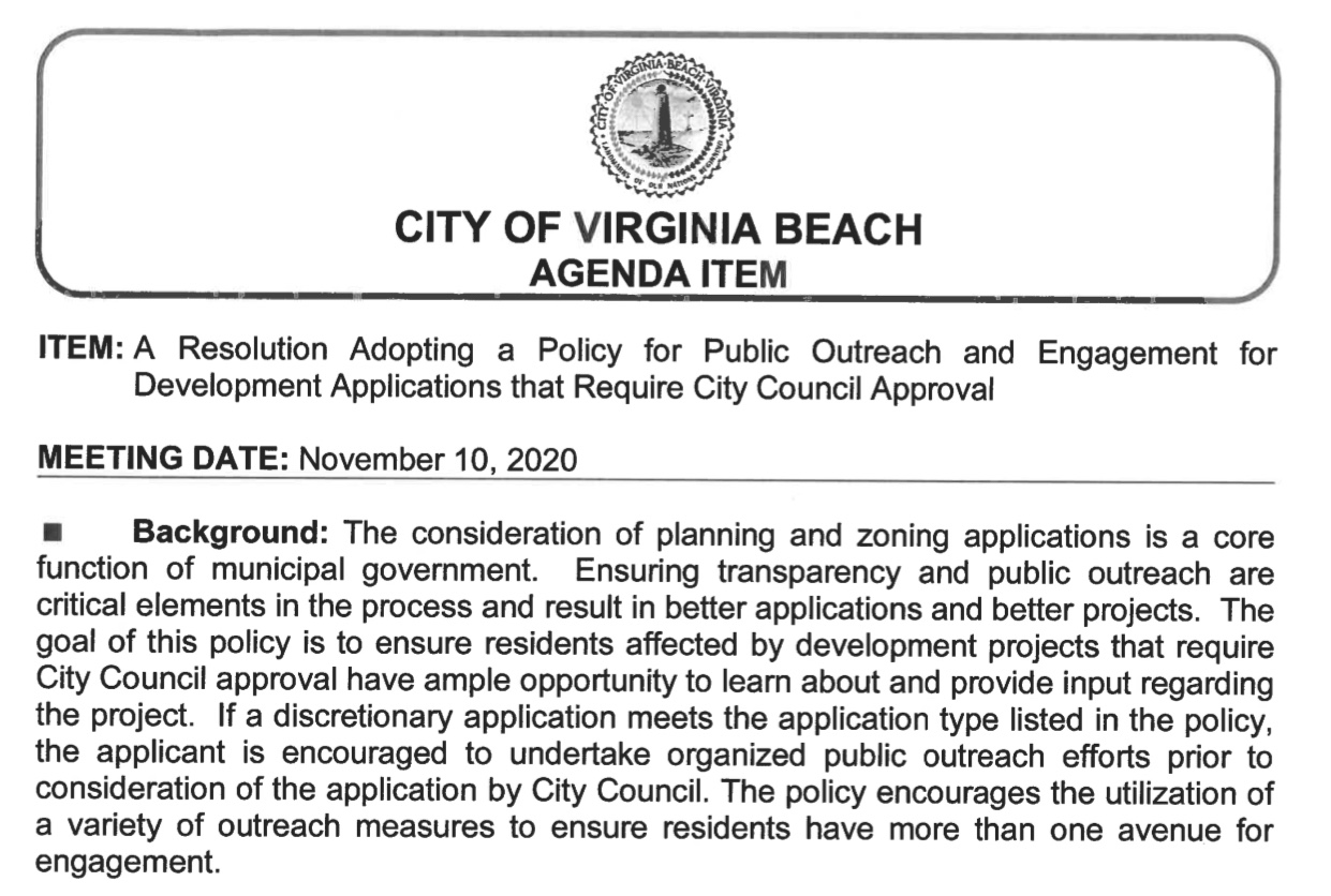 The Shore Drive Community Coalition (SDCC), a 20 year old organization made up of local civic groups representing residents in the Bayfront area of Virginia Beach, formally requests that the Short Term Rental (STR) Overlay District, randomly created by Vice Mayor Wood, for the Cape Story by the Sea neighborhood (East Shore Drive) be removed immediately from the proposed STR ordinance change.